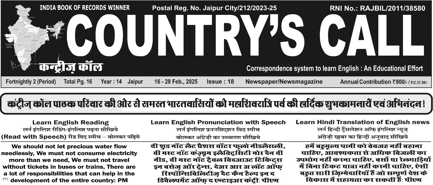 कंट्रीज़ कॉल पढ़ें, इंग्लिश बोलें, आज से, अभी से, गारंटी से !
